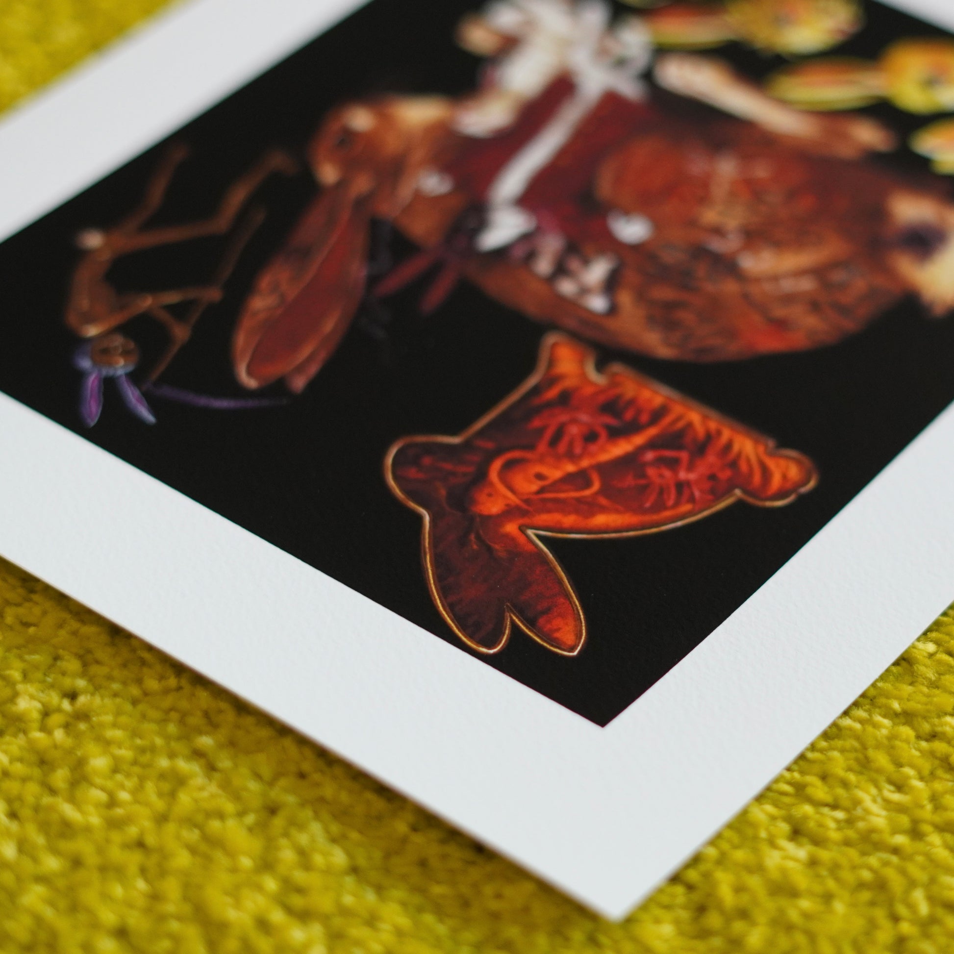 Printed on 100% cotton rag paper with a soft, textured surface and a velvety rich matte finish. The print's vivid colors, depth, and detail mimic the quality of an original painting.