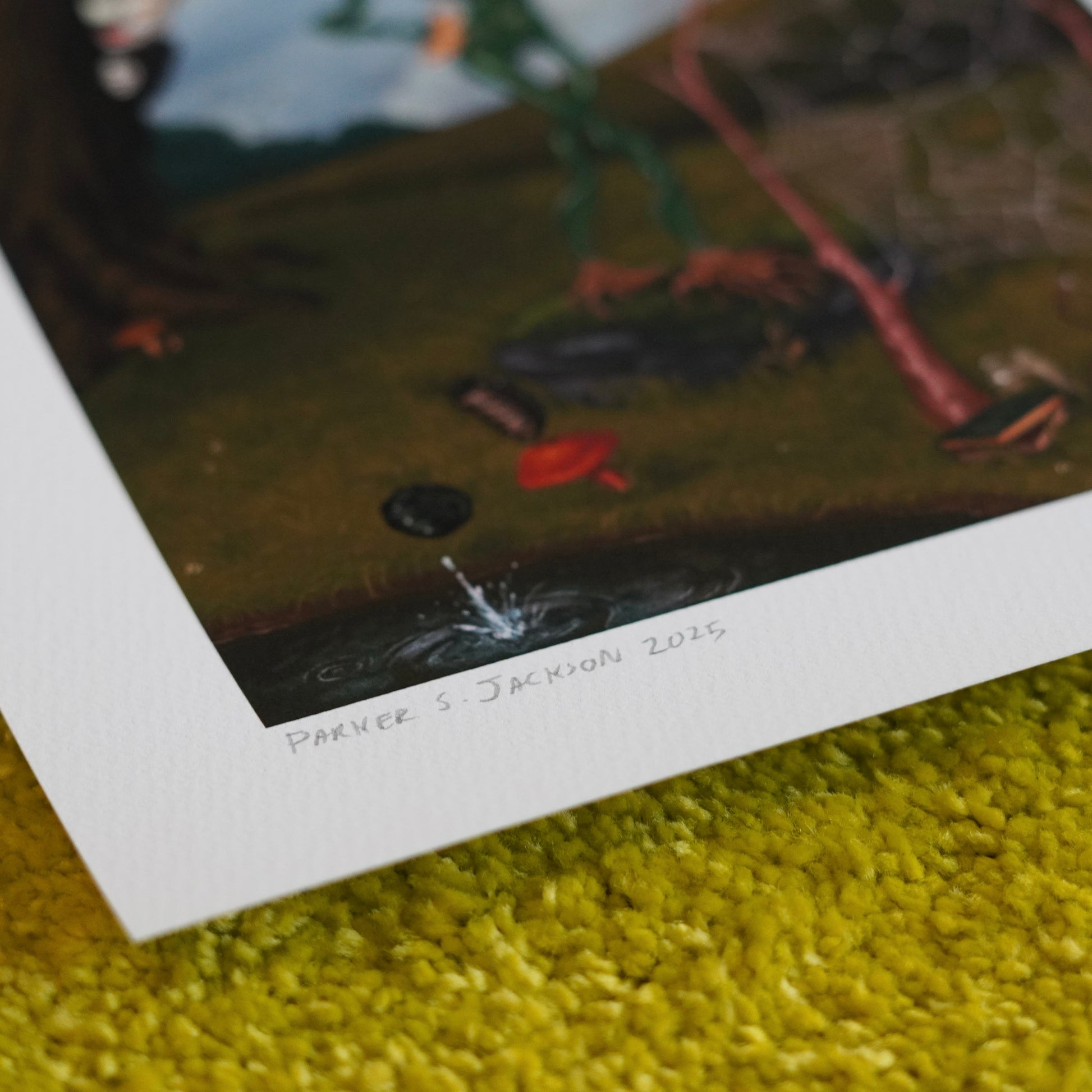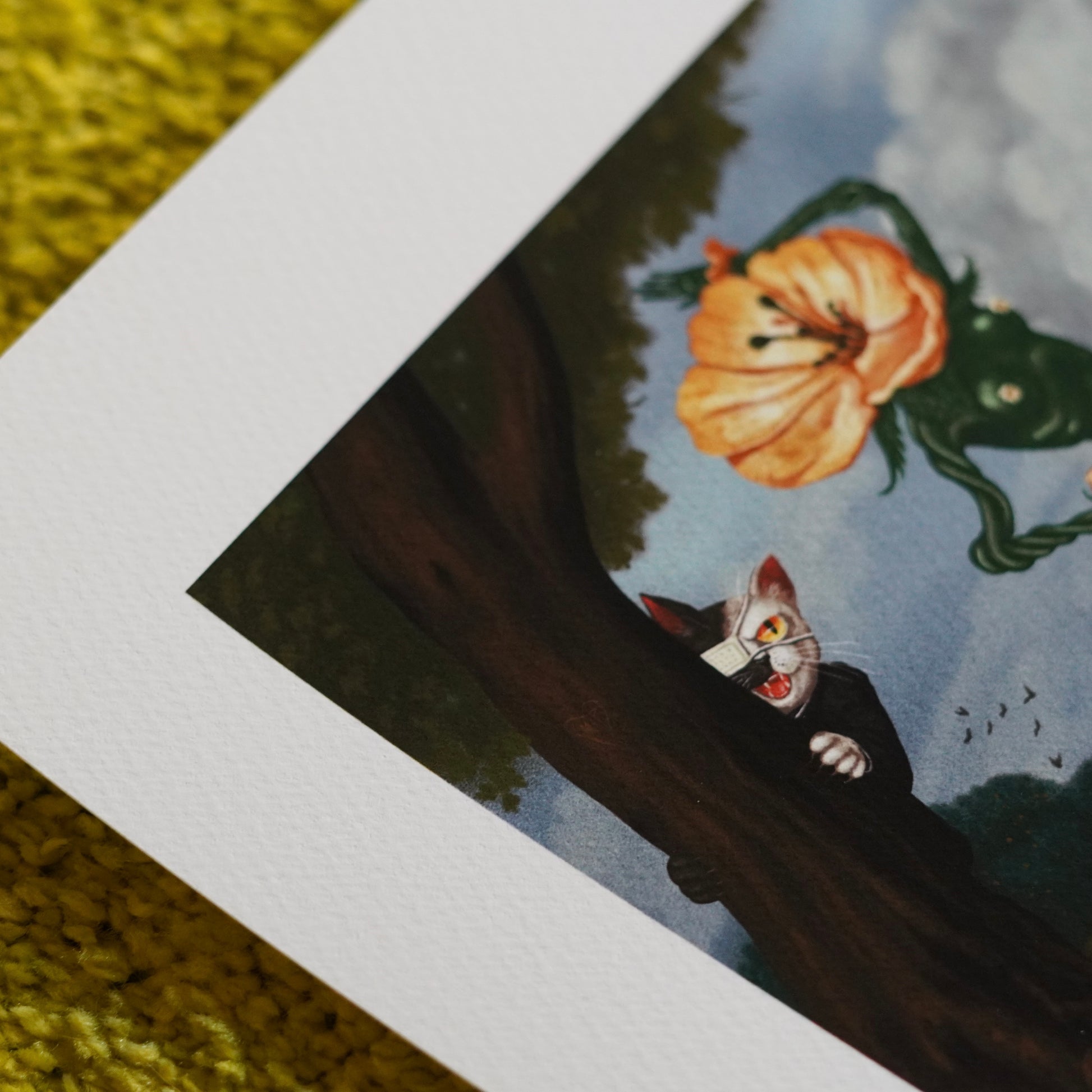 Printed on 100% cotton rag paper with a soft, textured surface and a velvety rich matte finish. The print's vivid colors, depth, and detail mimic the quality of an original painting.